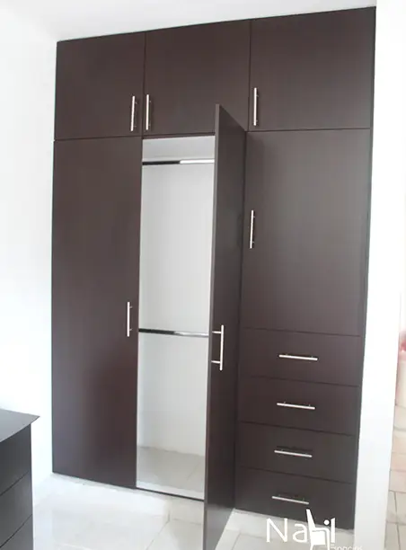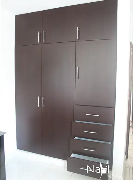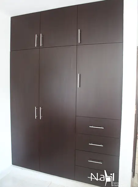 Un clásico en cuanto a acabados se refiere es el tono chocolate. Este closet fabricado en laminado