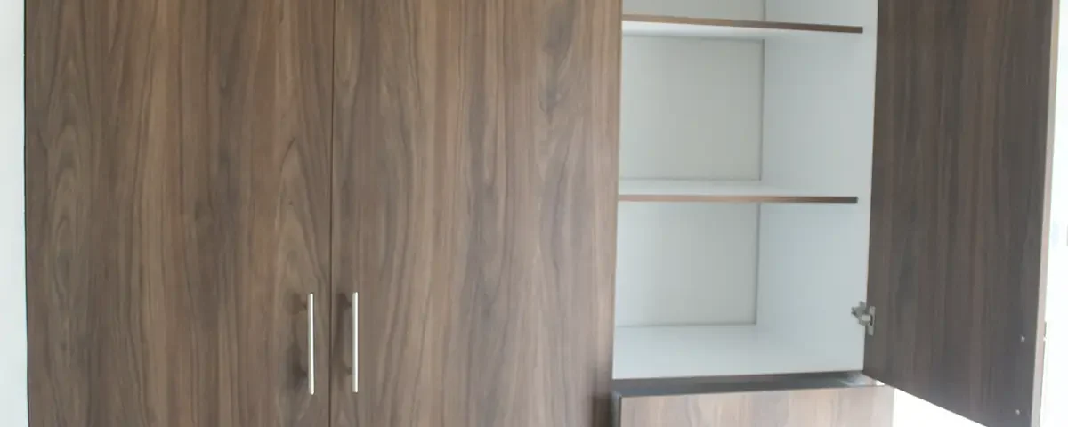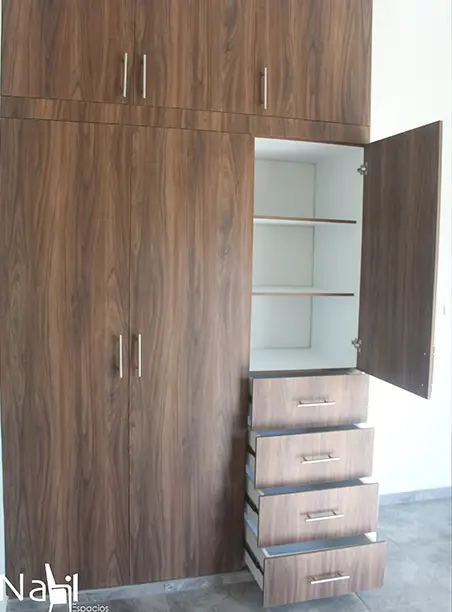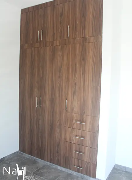 - Acabados. Frentes de puerta Rioja e interiores laminado blanco cristal.